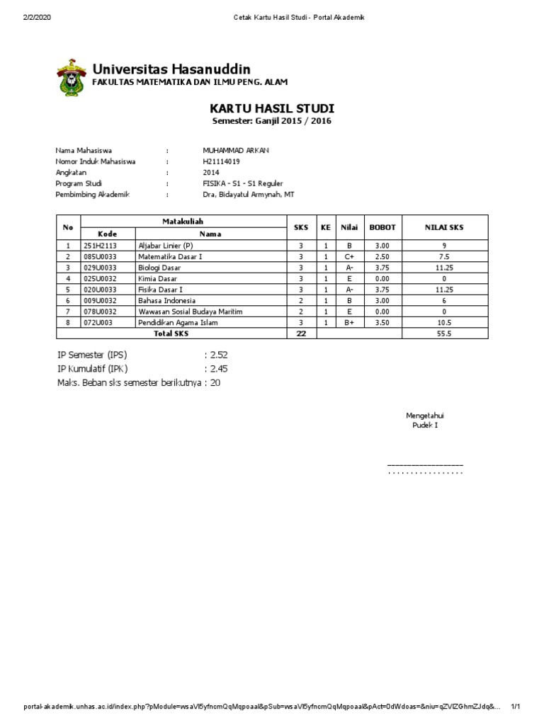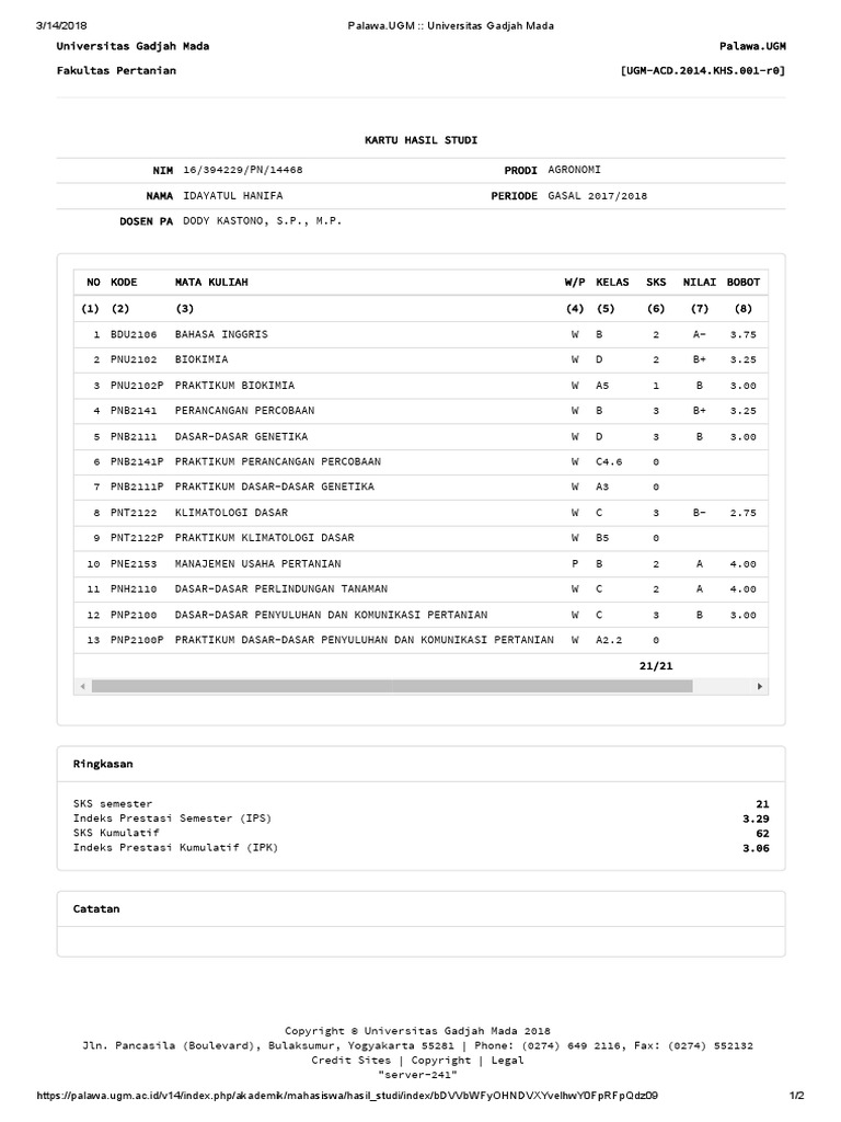 1. Ketahui Nilai Mata Kuliah dan Bobot SKS